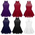 Discount Price Ballet Leotard Girls Sleeveless Halter Sparkly Rhinestone Mesh Splice Figure Ice Skating Roller Ska with Free Worldwide Shipping!