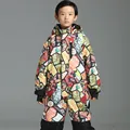 Children One Piece Skiing Suit Winter Printed Hooded Windproof Reflective Warm Snowboarding Set Outdoor Sportswear Skiing Suit